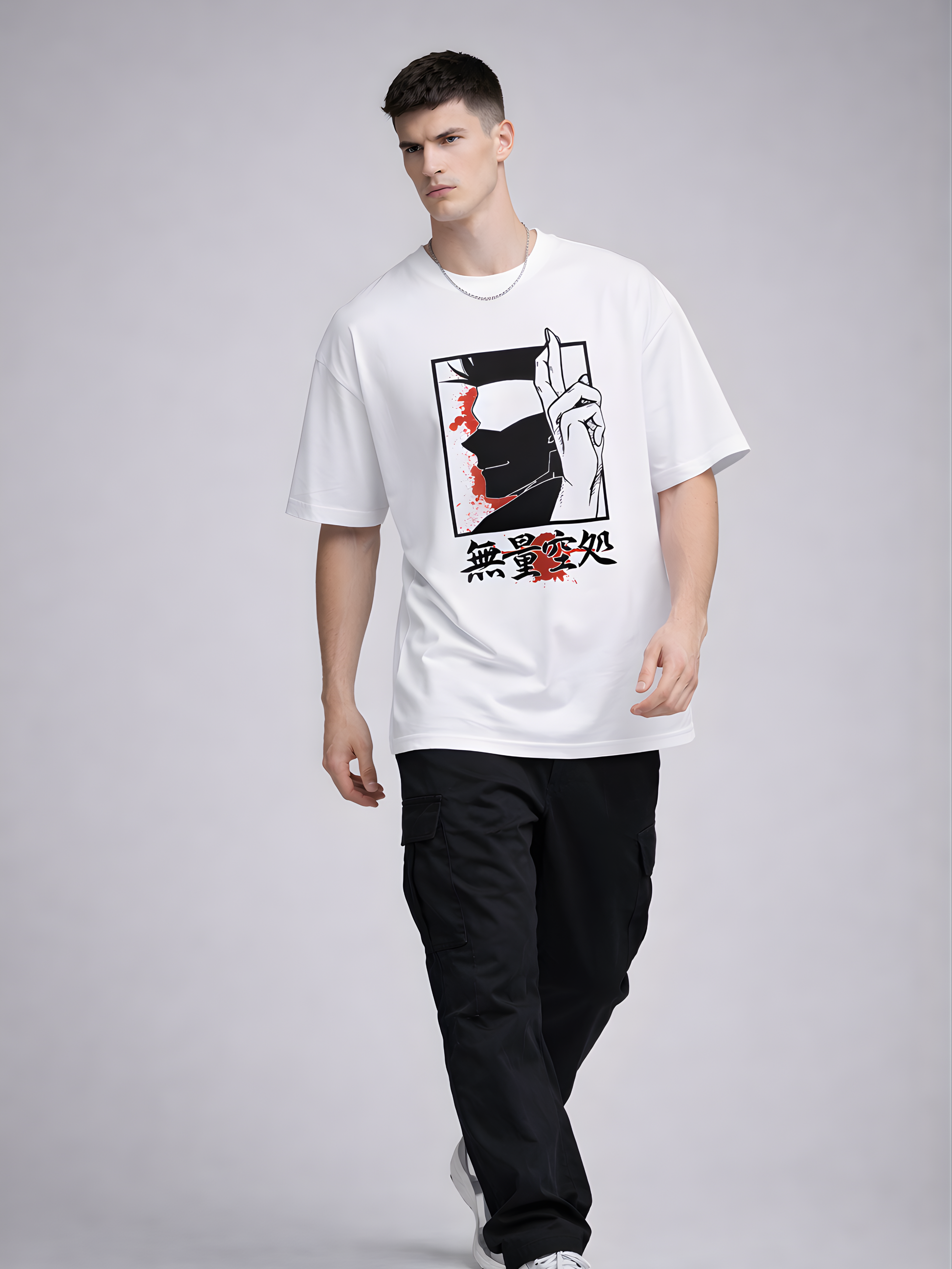 The Silent Domain Oversized T-Shirt is crafted for those who speak through presence, not noise. Featuring a striking anime-inspired monochrome graphic with red accent splashes, this design represents control, focus, and dominance — a perfect balance of art and attitude.