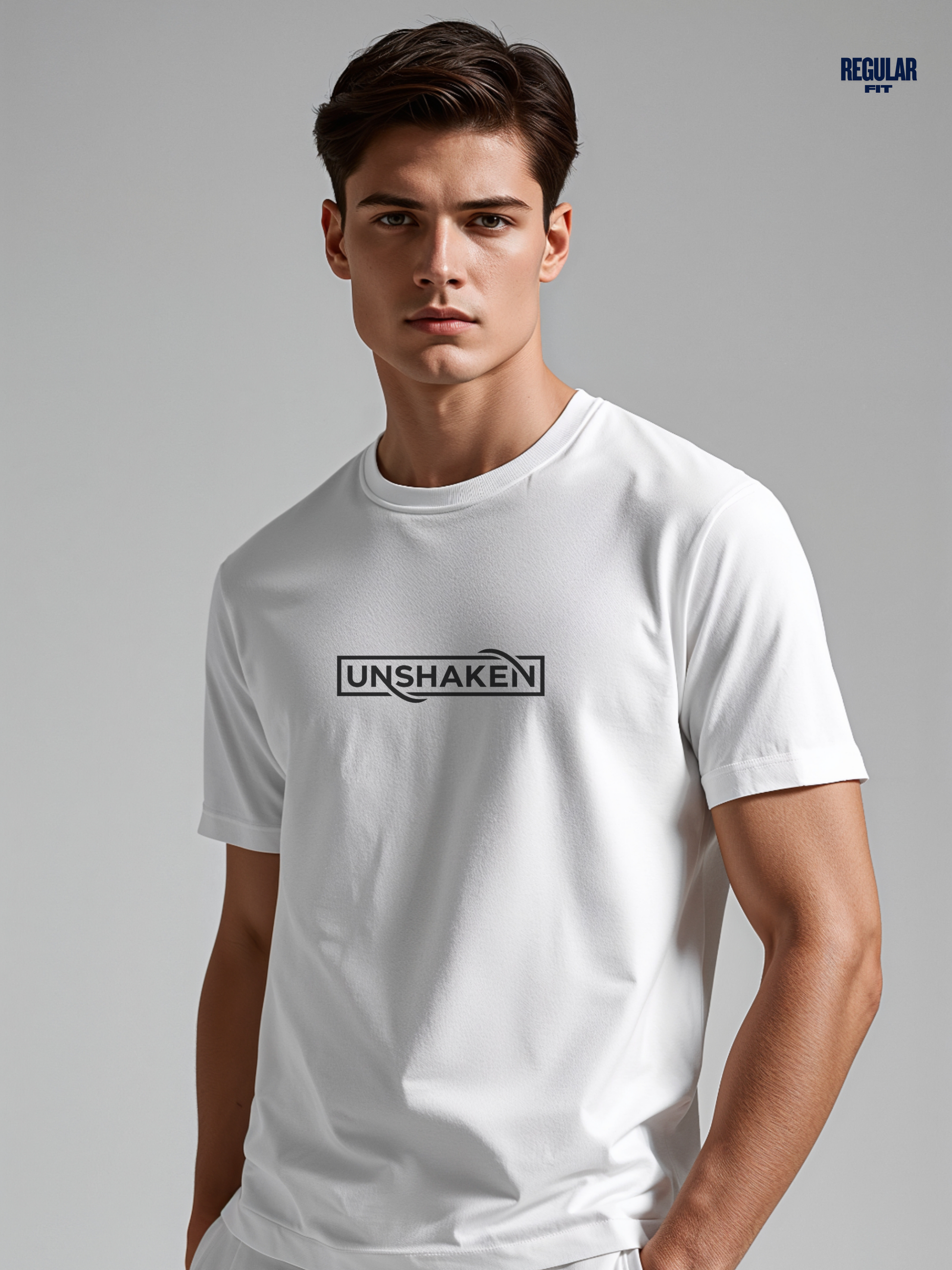 UNSHAKEN REGULAR FIT T-SHIRT (WHITE & BLACK) — BUILT FOR THOSE WHO STAY GROUNDED